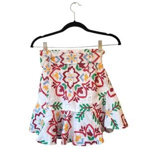 Never A Wallflower Women's White Floral Embroidered Ruffle Skirt Size XS