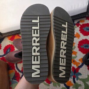 These stylish, comfortable clogs are looking for the right feet to dress them up and down! There is a small oil stain on the one toe (as seen in the photos) which I think could be gotten out by leather cleaner.