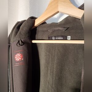This dark green Neversummer tech sweater is not only super warm, but also water resistant. Perfect as a midlayer or outer layer on a misty day.