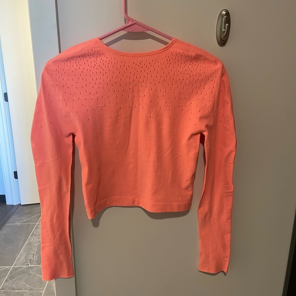 Never-worn, size small, super cute Fabletics top. Very cute see-through dot detail. Cropped, tight-fitting. Really soft.