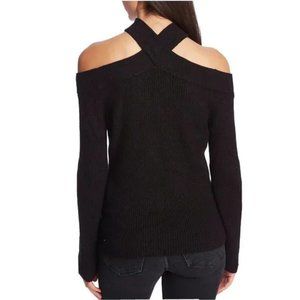 New 1. STATE Cold Shoulder Crossover Neck Halter Long Sleeve Black Sweater XXL