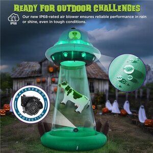 🧿Powerful and Durable IP68 Fan: Featuring a waterproof IP68-rated fan, this inflatable stays fully operational in all weather. The durable material ensures long-lasting use while the fan keeps the UFO steady and inflated under all conditions.