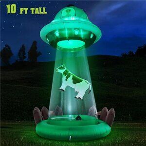 New 10 FT Halloween Inflatables UFO with Floating Cow Outdoor Decorations,