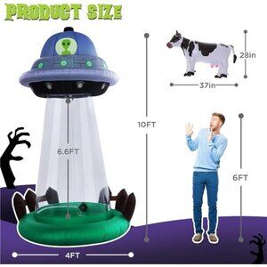Take your Halloween décor to new heights with this incredible 10-foot Alien UFO Cow Abduction inflatable! This eye-catching design is perfect for making your yard the talk of the neighborhood. With its towering metallic UFO structure during the day and glowing green LED