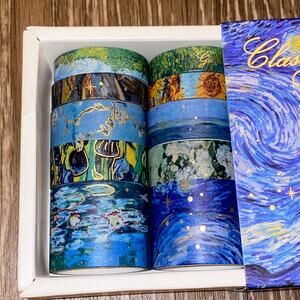New - 10 rolls of Van Gogh watercolor washi tape of varying sizes.