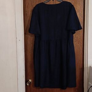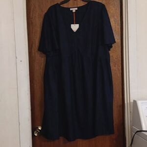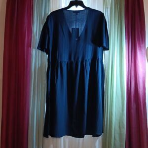 New 100% Rayon Blue & Black Dress With Side Pockets Large New With Tags