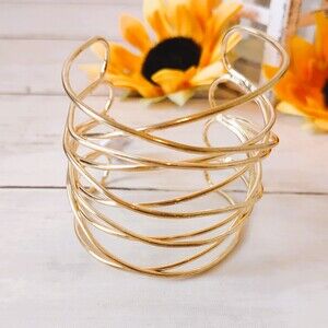 New 10K Gold Plated Intertwined Cuff Bracelet 3" Long Hypoallergenic