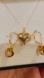 New 10K Solid Real Gold necklace earrings set 3D puff heart long dangle earrings
