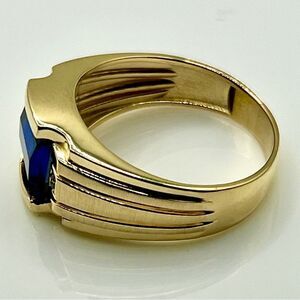 New 10k Gold Men's Created Sapphire and Diamond Ring