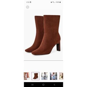 New Has Box, but Box is Damaged, Women's Size 11E Extra Wide JustFab Brown Faux Suede Sexy Pretty Chunky High Heel Pump Booties Boots