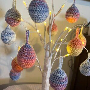 New 12 Crocheted Easter Eggs w/Loops for Hanging - Decoration - Tree Not Include