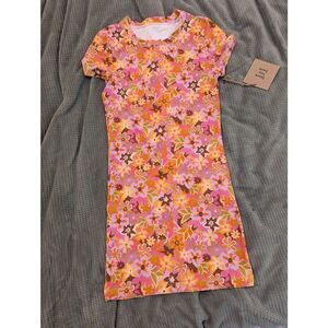 New $120 STONE FOX SWIM Bambi Baby Tee Dress Retro Pop Print Small Swim Dress