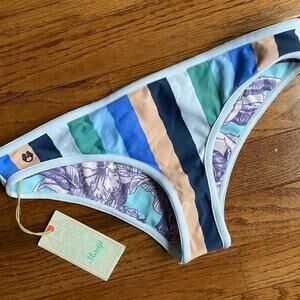 New $145 Maaji Women's Blue Striped Cielo Branco Reversible Bikini Bottom MED