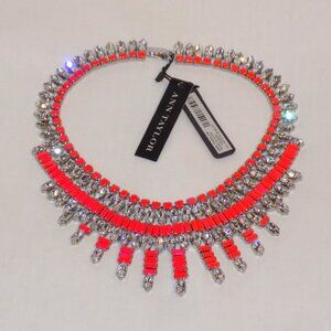 New $148 Ann Taylor Pronged Crystal & Neon Pink Statement Bling Collar Necklace