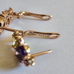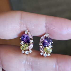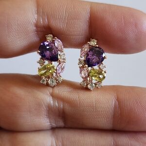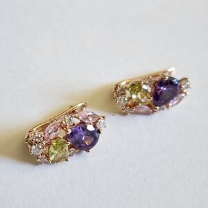New 14K Gold Plated Amethyst Peridot Pink Sapphire Diamond Hoop Earrings