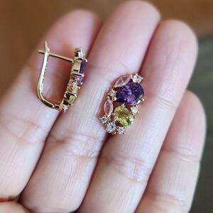 New 14K Gold Plated Amethyst Peridot Pink Sapphire Diamond Hoop Earrings for Women