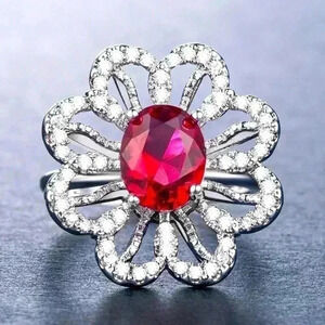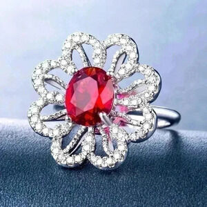 New 14k Gold Over Sterling Silver Ruby Diamond Flower Ring