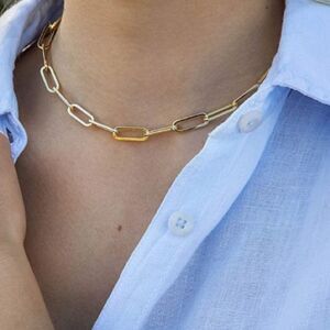 New 14k Gold Choker Paperclip Chain Link Necklace Adjustable up to 16”
