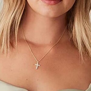 New 14k Gold Plated CZ Cross Necklace Choose Color