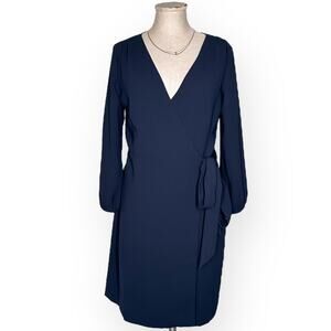 New $150 J CREW Wrap Dress 365 Crepe Knee Length Minimalist Office Career Blue 6