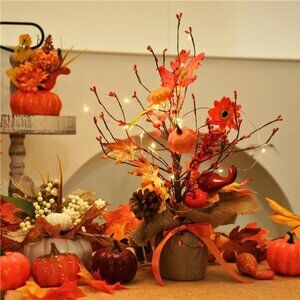 🧿【Suitable Size】: The size of this Fall Table Tree is 17.7in/45cm, which is very suitable as a table decorations, Fall centerpieces for table. The product comes with a light string and requires two AA batteries (batteries are not included)