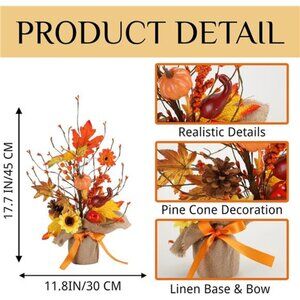 🧿【Easy to Use】: The branches of the fall tree can be bent manually, and you can easily create your favorite shape. The tree is full of yellow artificial maple leaves pumpkin and berries. You can place it on the dining table, desk, fireplace, windowsill or office