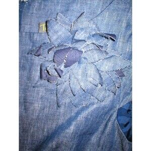 New $189 Womens Taylor Dress 8 Dark Denim 100% Linen Flower Pin Jean Color Blue
