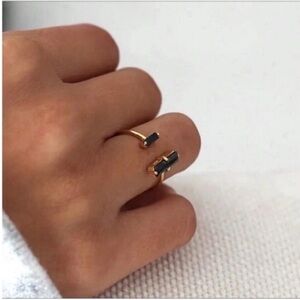 New! 18K Gold Plated Black Obsidian Bar Open Ring (One Size) NWOT