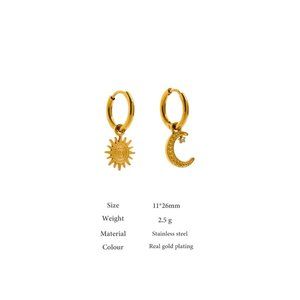 New 18K Gold Plated Diamond Moon Star Huggie Hoop Earrings
