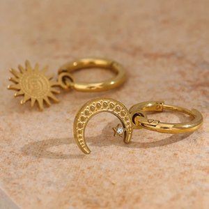 New 18K Gold Plated Diamond Moon Star Huggie Hoop Earrings