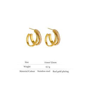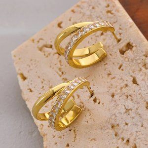 New 18K Gold Plated Princess Cut Diamond Double Layer Round Hoop Earrings