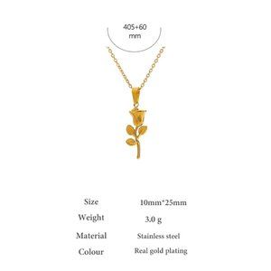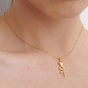New 18K Gold Plated Rose Flower Leaf Necklace