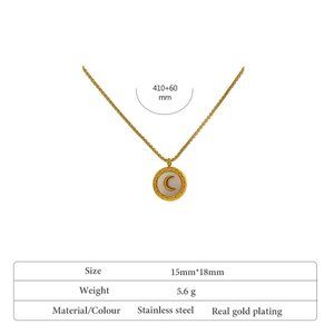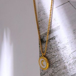 New 18K Gold Plated White Shell Moon Round Pendant Necklace