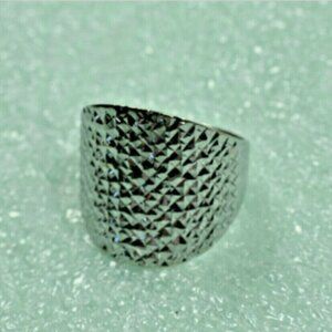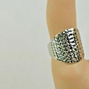 New 18K White Gold Wide Hammered Band Ring Sizable 8