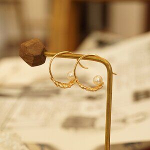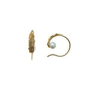 New 18K Yellow Gold Silver Needle Feather Pearl Earrings