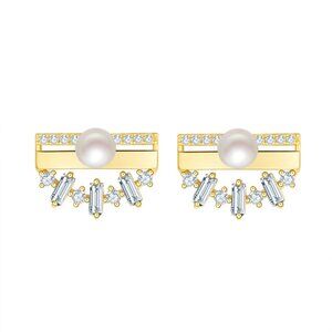 New 18K Yellow Gold Silver Needle Pearl Scallop Stud Earrings