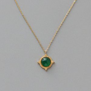 18k Gold Plated Stainless Steel, Green Agate Pendant