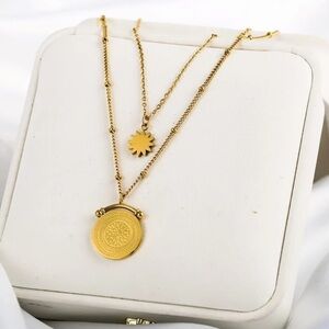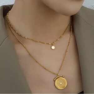New 18k Gold Plated Vintage Diamond Coin Star Double Layer Necklace