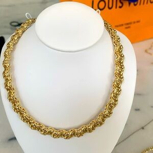 New 18k Rope Necklace Gold Plated Thick Braided Textured Chain 17โ Inches GIFT