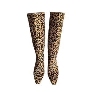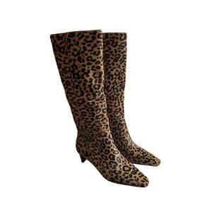 New $190 Steve Madden Dagne Leopard Print Real Fur Kitten Heel Boots Sz 6 Womens