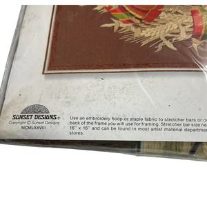 New 1978 Sunset Stitchery Natures Wreath Holiday Christmas Wall Hanging 16 x 16