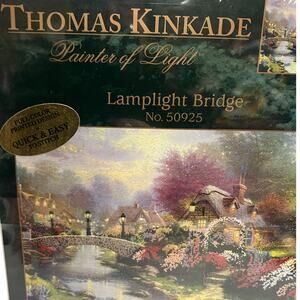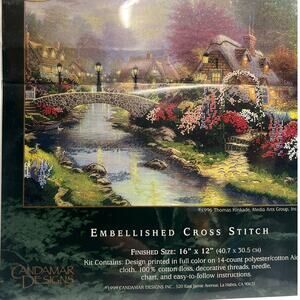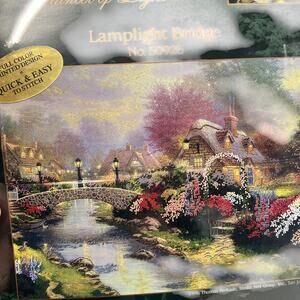 New 1996 Lamplight Bridge Cross Stitch Pattern Thomas Kinkade Candamar Designs