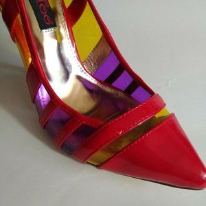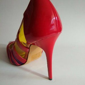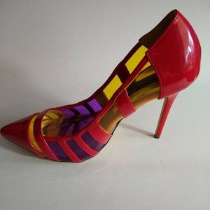 New 2 LIPS TOO Size 8.5 Red Yellow Pumps