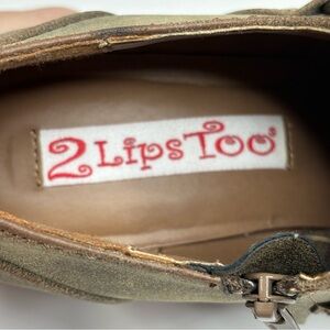 New 2 Lips Too Women Ankle Bootie Light Brown Burnished Toes Slip On & Zip 7.5