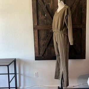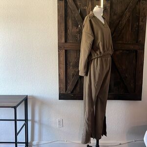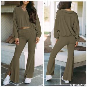 Long pants: a front leg slit, flexible waistband, high waisted and flared bottom, slouchy and relaxed loungewear sets