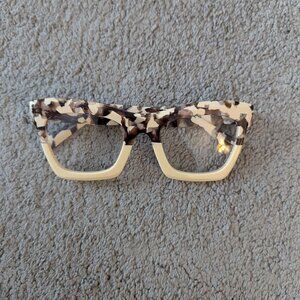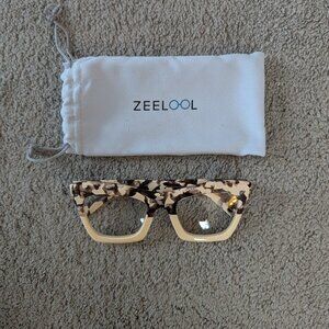 New! 2 Pairs of Zeelool Statement Eyeglasses. One pair is a cream featuring a brown and black print on the top and sides of the frames. The second is Black and features an orange and brown print on the sides of the frames. Both are in excellent condition. Will be shipped in their protective cases and inside a Zeelool box.