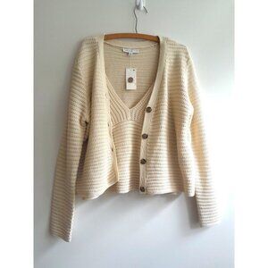 New knits to rock now. This twinset by And Now This takes your sweater game up several notches. Model is wearing size small Tank top: V-neck Cardigan: V-neck; button-front closures; dolman sleeves