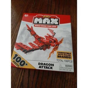 Two New Sealed Boxes Zuru Max 100+ Piece Building Block Sets Compatible with Legos and Other Major Brands- Knights Castle 101 Pieces Green, Red, and White and Dragon Attack 106 Pieces Red, Black, and Orange. Ages 3+