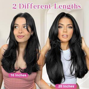 New 20 Inch Black Clip-in Hair Extensions, Thick Long Straight Layered Lace Weft
