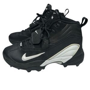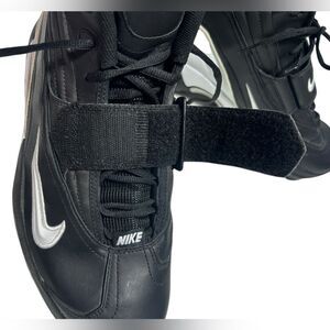 Rare vintage Nike Zoom Air TD football cleats from 2002 in brand new, unworn condition. These cleats feature Zoom Air cushioning, bold black/silver colorway, and molded studs for powerful field traction. A must-have for Nike collectors or players who love retro football gear.